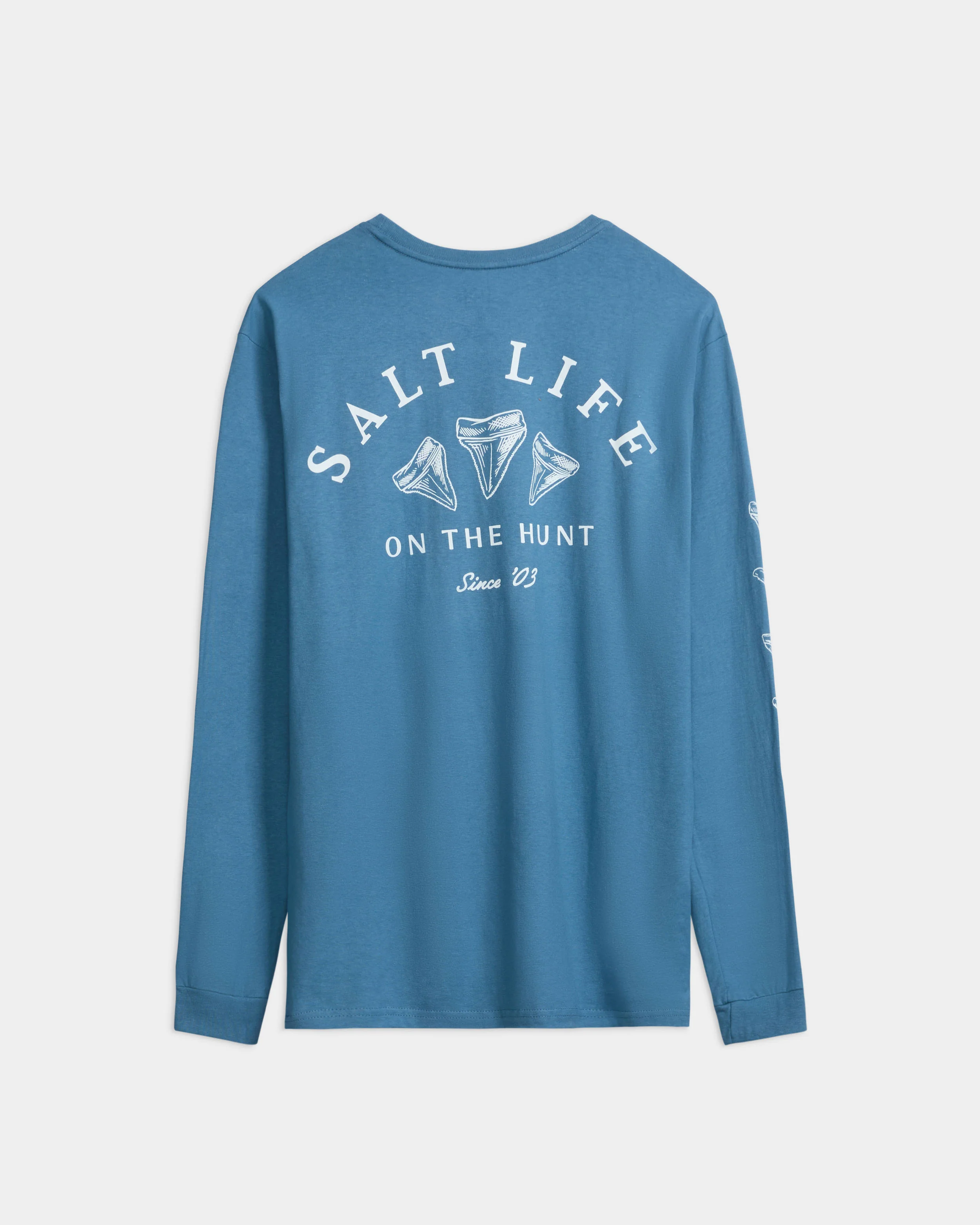 The on the Hunt long sleeve pocket tee features a screen printed logo on the left chest, right sleeve, and back. The Salt Life cotton tees provide an ultra-soft feel and a comfortable fit.