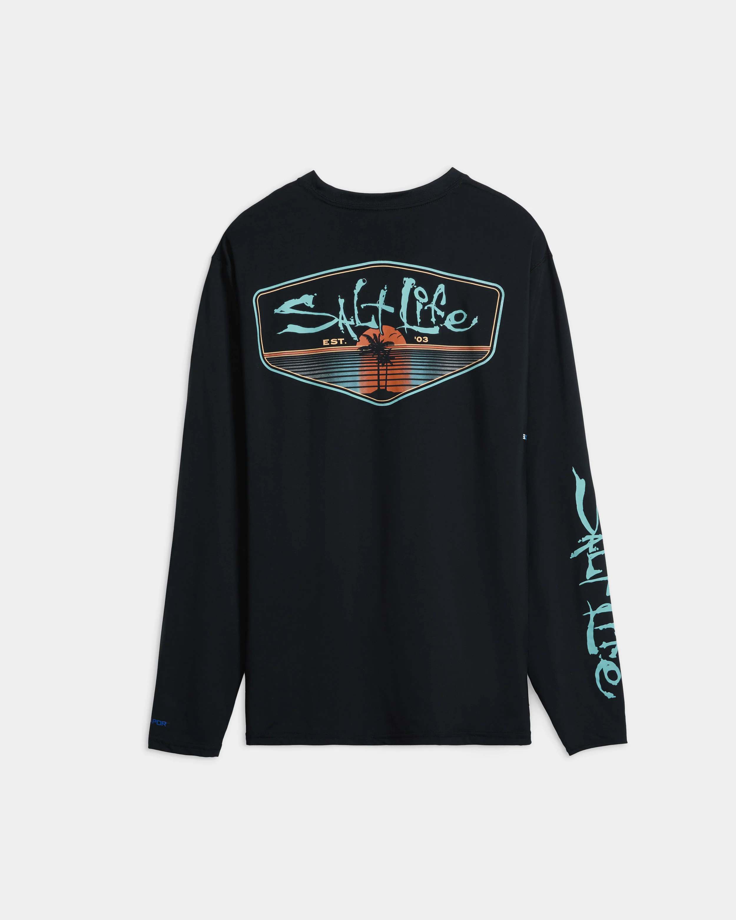 The Private Island performance long sleeve delivers lightweight comfort and advanced sun protection for your time outdoors. Designed with quick-dry, moisture-wicking, and antimicrobial fabric, it keeps you cool and fresh whether you're on the water or off. Featuring a left chest patch pocket and bold screen-printed graphics, this long sleeve blends function with laid-back style for your next adventure.