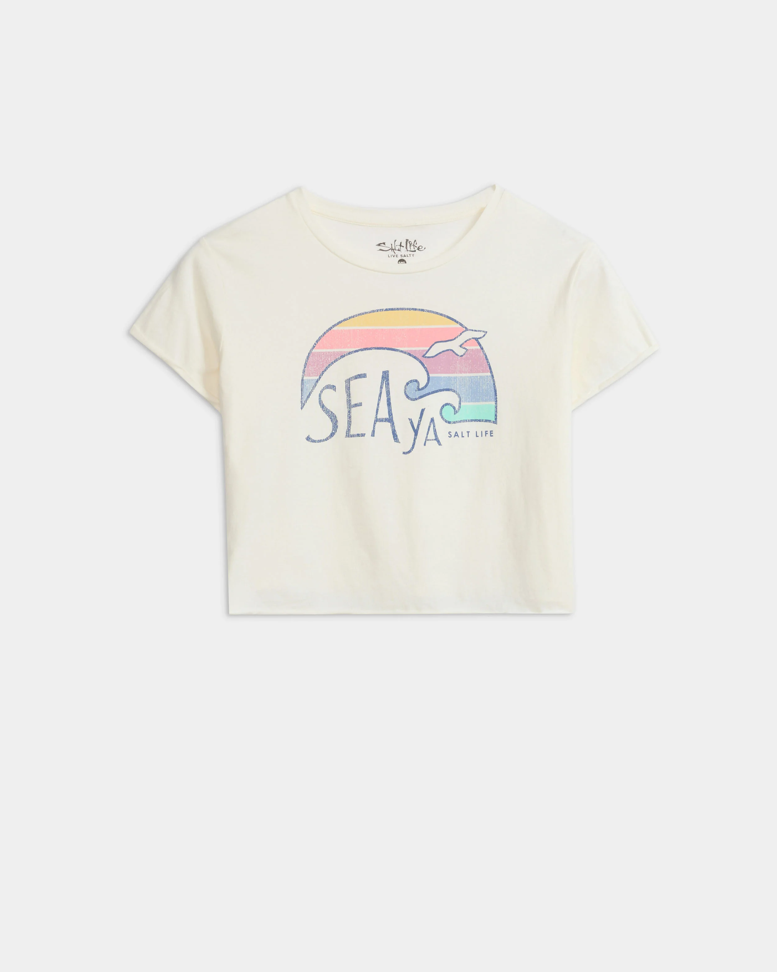 Flirty, fun, and ultra-soft, this cropped crew neck tee is your new go-to for laid-back days with a little edge. Made from garment-washed cotton jersey with cuffed sleeves and a bold front screen print, it’s the perfect mix of comfort and style.